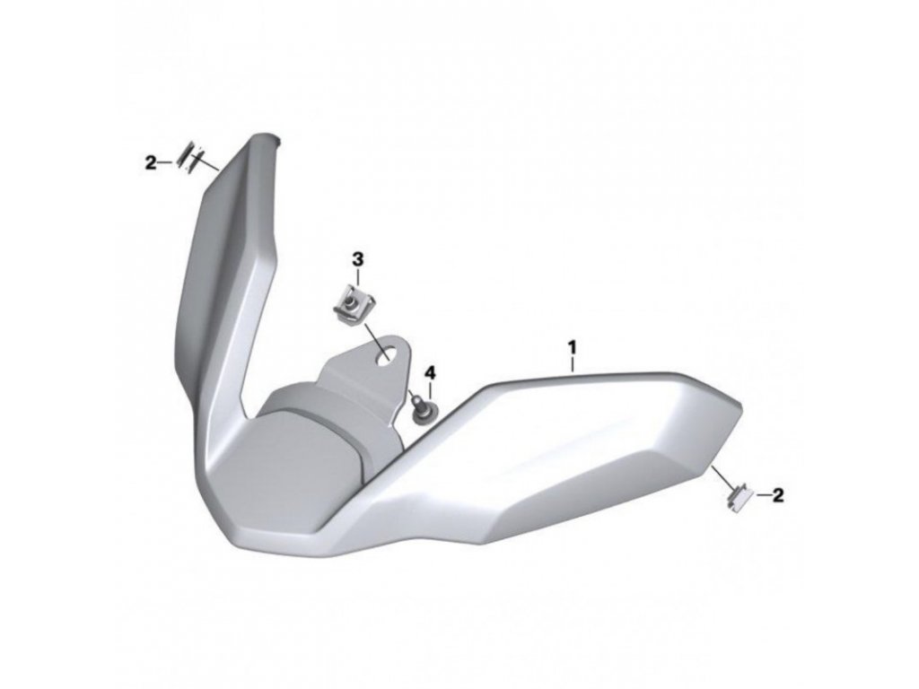 Beak extension R1200GS LC, from 2017 onwards, R1250GS The package includes a cover and mounting material: Cover: 77148561425 Clip 2pcs: 46638521396 Screw: 46638521653 Nut: 46638532314Additional parameters