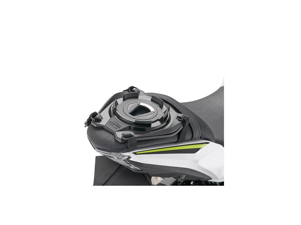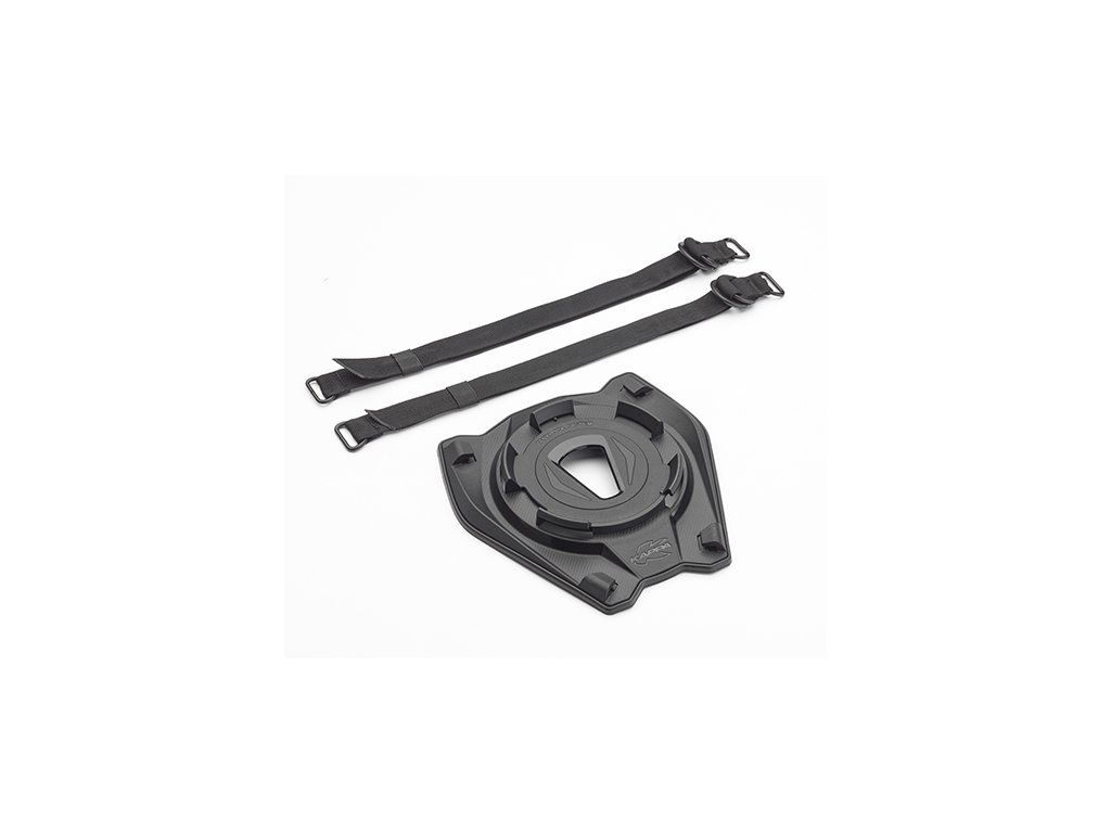 Base with a universal fastening system for use with a Tanklock bag on the passenger seat side.