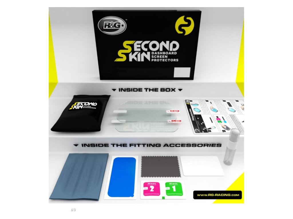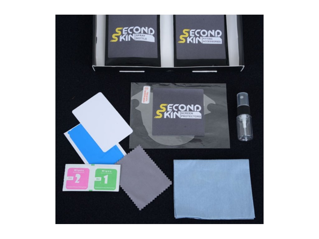 The set includes detailed instructions to help you place the dashboard protector, 2x dashboard protectors (1x spare), a mini spray bottle, a velcro fabric polish, wet and dry wipes, a squeegee and dust removal strips.