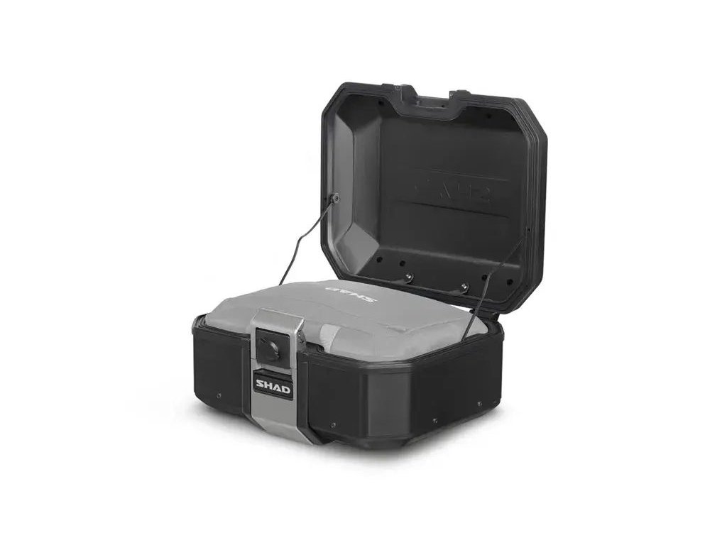 TR37 Black Edition Topcase: A full-aluminum case in a black finish with a 37-liter capacity. Its compact size improves motorcycle stability at high speeds.