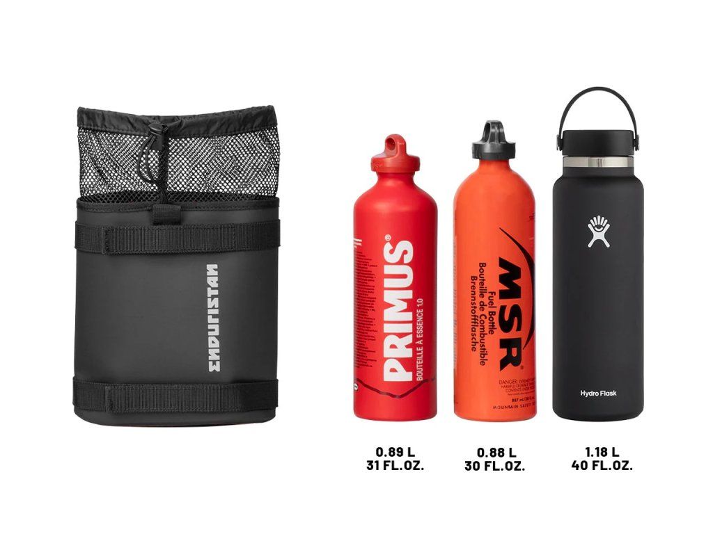 Ať už si s sebou vezmete vodu na jízdu pouští nebo palivo na odlehlou horskou stezku – s pouzdry na lahve Enduristan máte tekutiny vždy po ruce. Jsou bezpečná, modulární a lehká, takže jsou ideálním doplňkem pro jakoukoli dlouhou trasu.