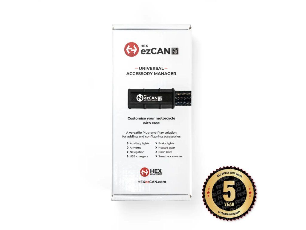 HEX ezCAN se přímo zapojuje do tvého motocyklu a naslouchá příkazům přenášeným přes CAN-bus datový tok motocyklu. Jedná se o konfigurovatelné, bezproblémové plug-and-play řešení, které ti umožní přidat jakýkoli elektronický doplněk na tvůj motocykl bez nutnosti řezání kabelů nebo ztráty záruky motocyklu. ezCAN ti umožní bezpečně napájet a konfigurovat příslušenství – a ovládat je pomocí stávajících ovládacích prvků motocyklu.
