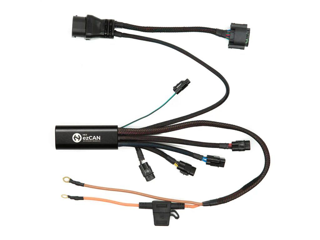 Mnoho výrobců příslušenství (jako jsou světla a klaksony Denali) navrhuje své produkty tak, aby bez problémů fungovaly s HEX ezCAN, což dělá instalaci skutečně plug-and-play. Ale nemusíš se bát, pokud tvé příslušenství nemá konektory HEX ezCAN – tvá sada ezCAN obsahuje čtyři konektory, které ti umožní snadno napájet jakékoli dvou- nebo třívodičové příslušenství.