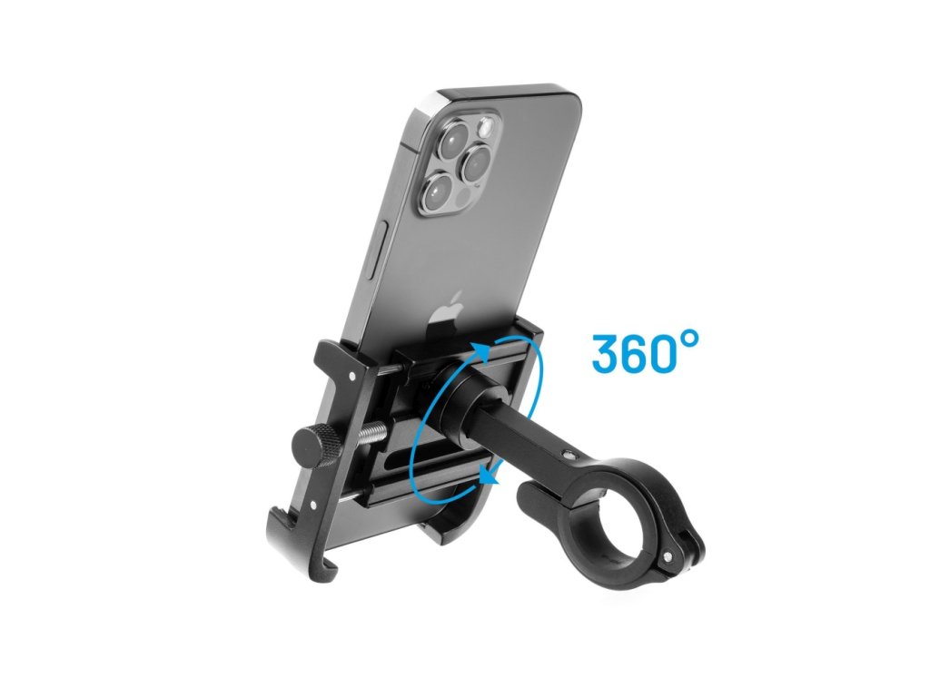 Hliníkový držák mobilního telefonu Bikee ALU 2 s otočnou hlavou, černý