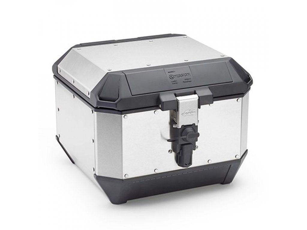 Kufr na motorku K'MISSION z přírodního hliníku, 44 l. Pohodlně pojme modulární přilbu.