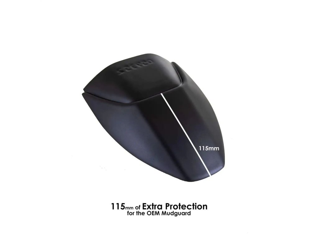 Prodloužení předního blatníku R&G představuje odolný doplněk s dlouhou životností, který účinně chrání svody výfuku, spodní část motoru a chladič před nečistotami, odlétajícími kamínky a dalšími nečistotami z vozovky. Je navrženo tak, aby přesně kopírovalo přirozené linie předního blatníku, díky čemuž dokonale ladí s designem motocyklu.