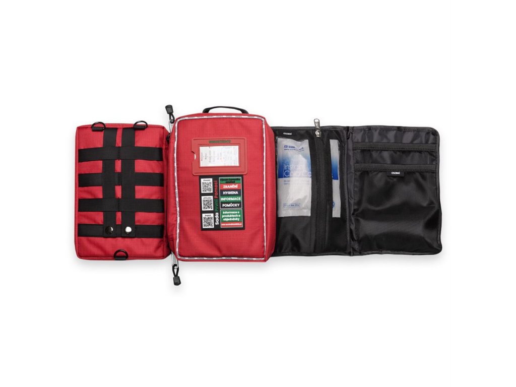 Lékárnička má odolný obal, kvalitní YKK zipy a je kompatibilní s MOLLE systémem. Celý obsah je v češtině, včetně návodů, popisů a příručky první pomoci. K dispozici je i mobilní aplikace iFirstAid zdarma.
