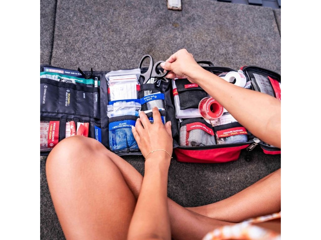 SURVIVAL First Aid KIT – Large je nejobsáhlejší lékárnička značky SURVIVAL, navržená tak, aby byla rychle použitelná i ve stresových situacích. Díky barevným sekcím a jasnému označení položek se v ní vyzná každý — vybavení je logicky rozdělené, snadno dostupné a připravené k okamžitému použití.