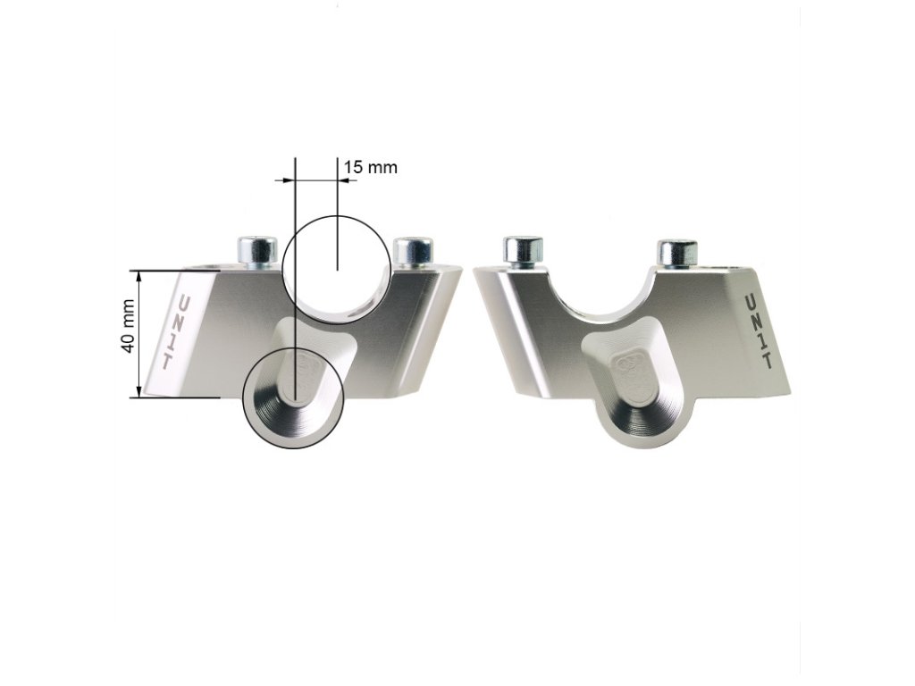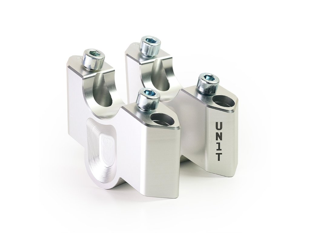 Speciální zvýšení řídítek, které jsme navrhli a CNC obráběli, jsou vyrobeny z hliníkové slitiny se stříbrnou povrchovou úpravou.
